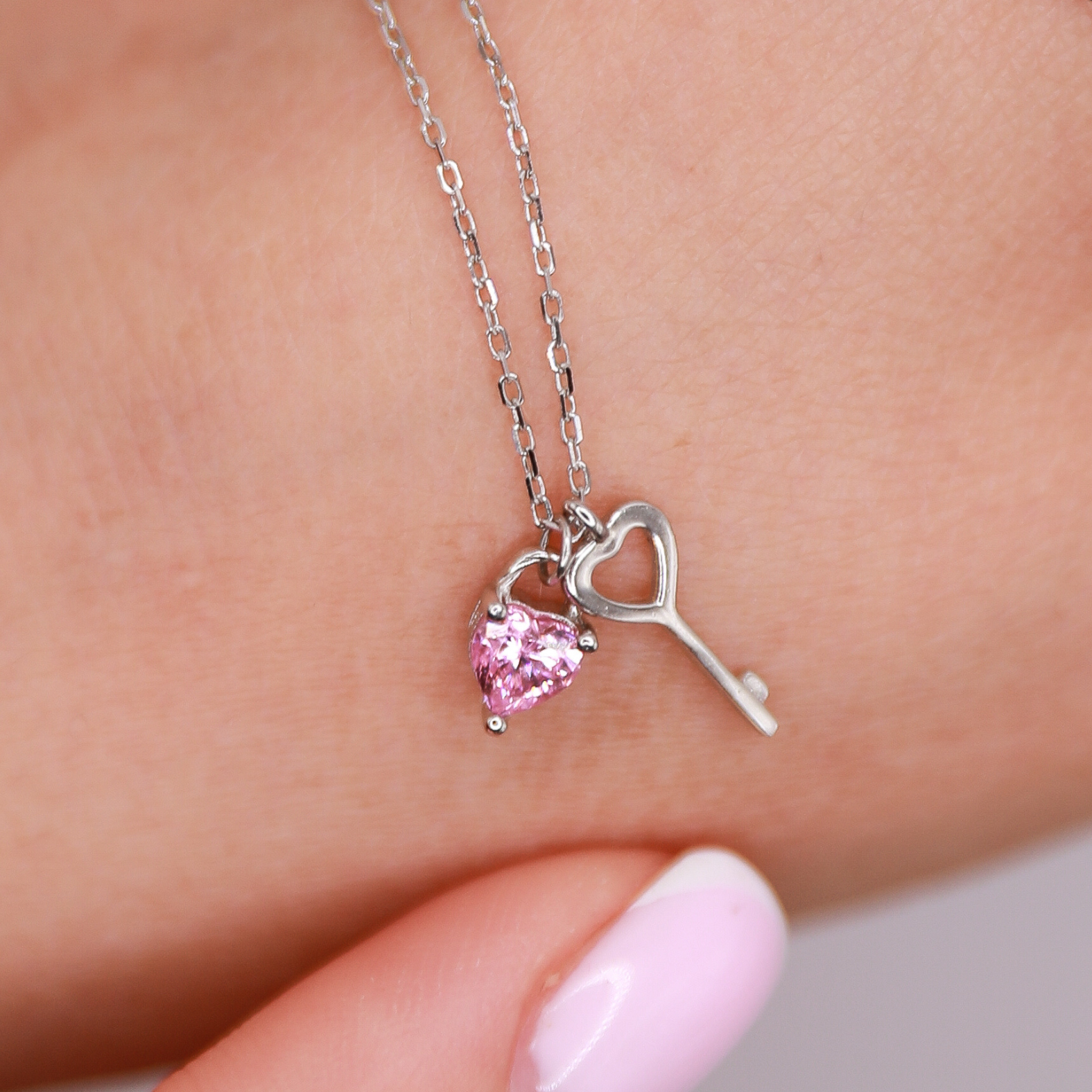 Collar Llave de Corazón con piedra Rosa